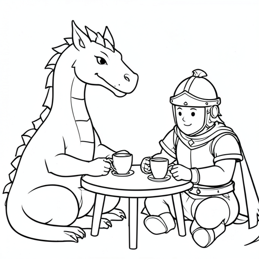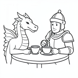 a dragon and Knight drinking tea together
