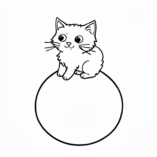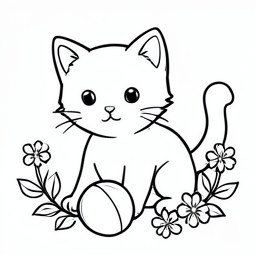 a kitten with ball, and flowers around it