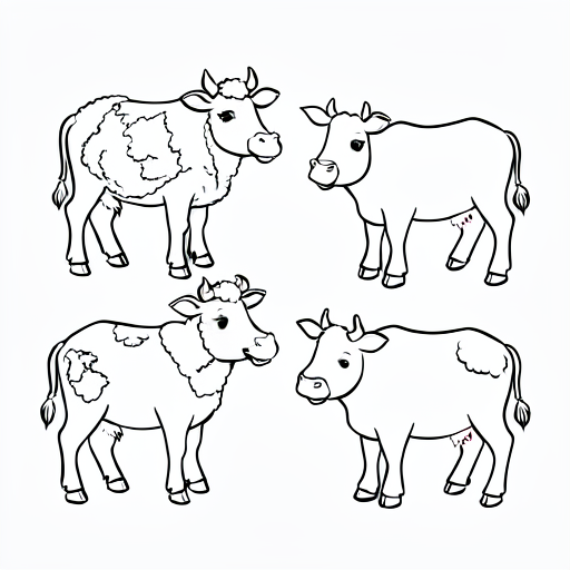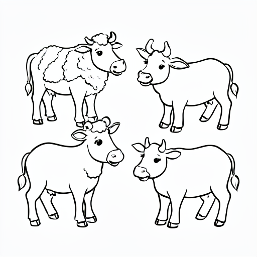 a few farm animals, cartoony, with crisp simple lines, suitable for children's colouring book, with no fill or shading
