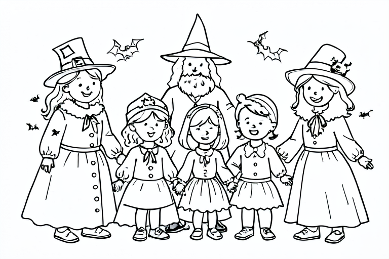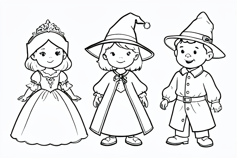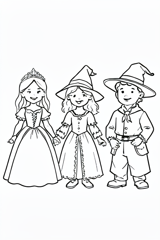 three children dressed in costumes: a princess, a witch, and a wizard.