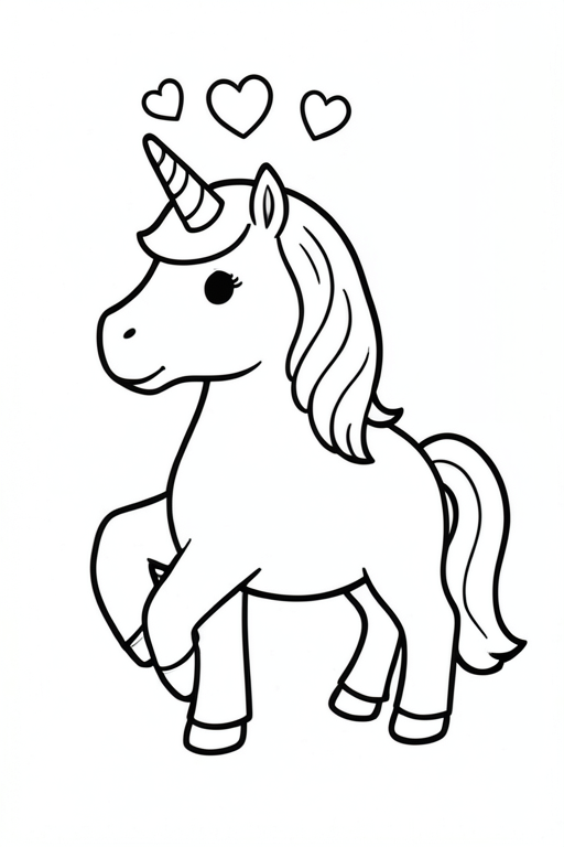 a unicorn with hearts above it