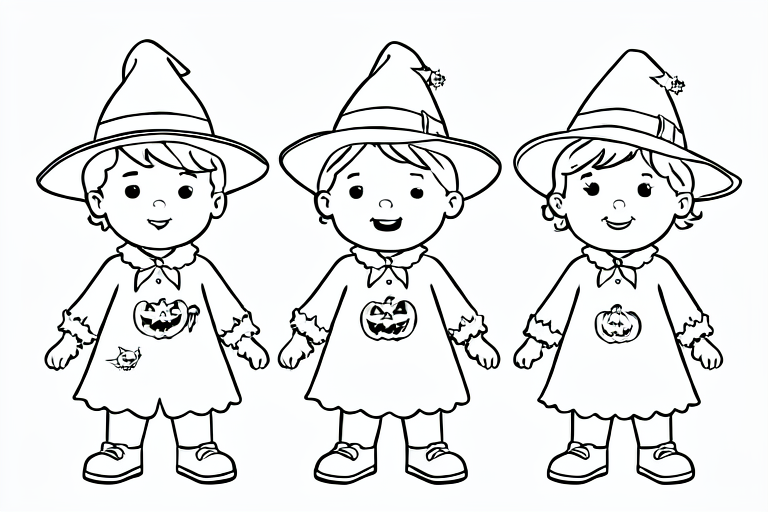 three children in different Halloween costumes