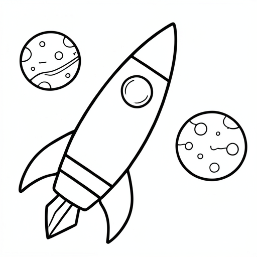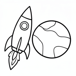 a rocket ship and a planet beside it, cartoony.
