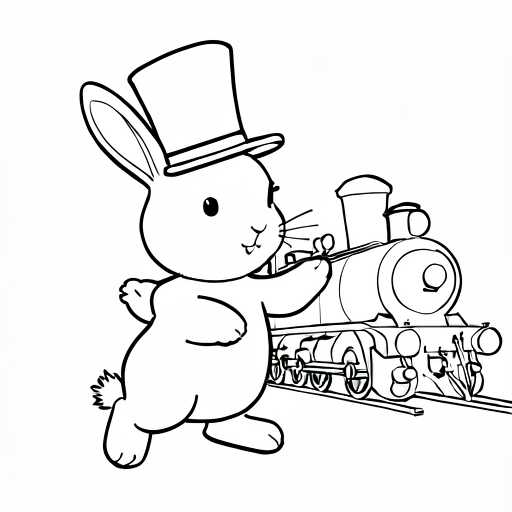Can you draw me a page with a dancing bunny wearing a top hat with Thomas the train