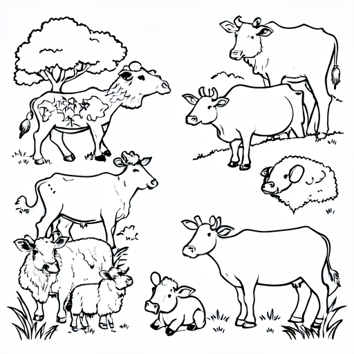 a few farm animals, cartoony