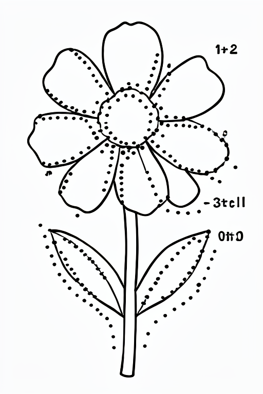 a flower. as a second step, replace a big continuous part of the lines with evenly spaced dots, 20 of them, ordered, and with a number label beside each dot .