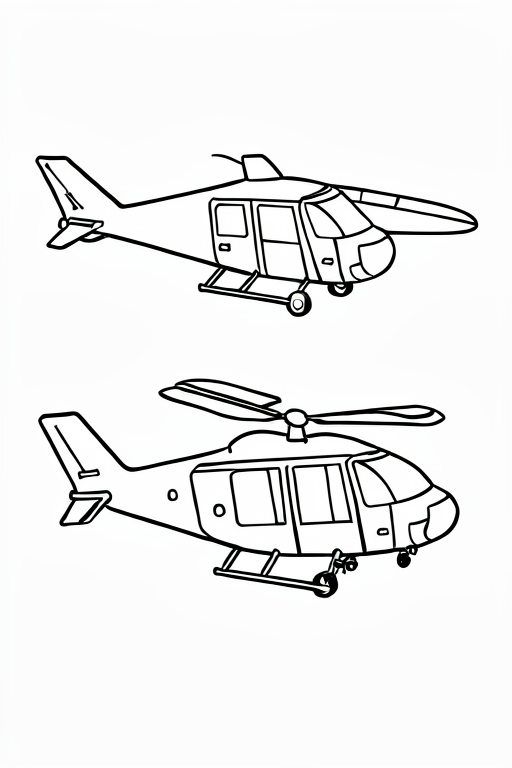 an airplane and a helicopter